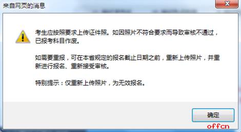 不是的,所有的考生上傳照片后,都會出現(xiàn)上圖這種提示,并不是表示照片上傳不成功。若后面審核提示照片不合格,考生需按照以上提示重新報考。
