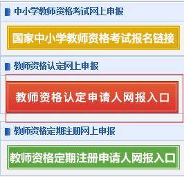 申請人登錄“中國教師資格網(wǎng)”,選擇“教師資格認(rèn)定申請人網(wǎng)報(bào)入口”,用本人注冊賬號和密碼登錄,選擇“教師資格認(rèn)定”(點(diǎn)擊