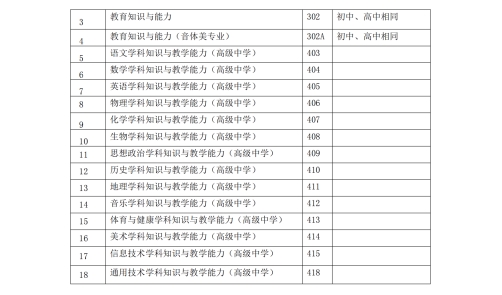 (二)根據(jù)教育部教師工作司印發(fā)的《關于中小學教師資格考試音、體、美專業(yè)考生公共科目單獨編碼的通知》(教師司函〔2017〕34號)精神,音、體、美專業(yè)考生的筆試公共科目一、科目二(科目代碼201、202、301、302)繼續(xù)實行單獨編碼(相應科目代碼:201A、202A、301A、302A),考試內(nèi)容暫與原科目相同。實行單獨編碼后,音、體、美專業(yè)考生在筆試報名時應選報單獨編碼的公共科目。取得科目201A、202A合格的考生,面試僅限于參加小學類別音、體、美專業(yè)科目;取得科目301A、302A合格的考生,面試僅限于參加初中、高中、中職文化課音、體、美專業(yè)科目?忌勋@得科目201、202、301、302合格成績,可相應替代科目201A、202A、301A、302A合格成績;考生已獲得科目201A、202A、301A、302A合格成績,不可替代科目201、202、301、302合格成績。