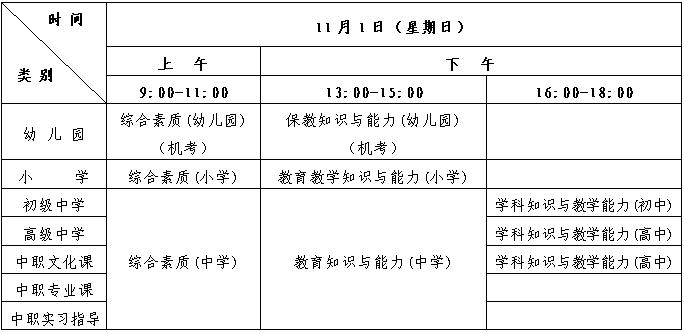 2015年下半年中小學(xué)教師資格考試筆試日程安排表