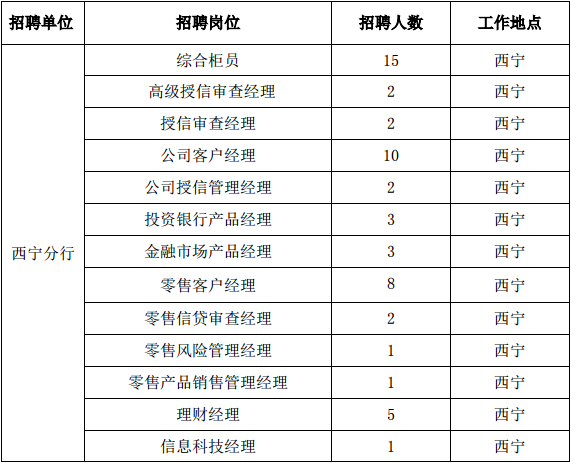 2017年浦發(fā)銀行西寧分行招聘啟事