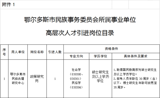 附件:1.鄂爾多斯市民族事務委員會所屬事業(yè)單位引進高層次人才崗位目錄