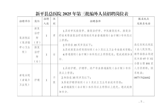附:新平縣總醫(yī)院2025年第三批編外人員招聘崗位表