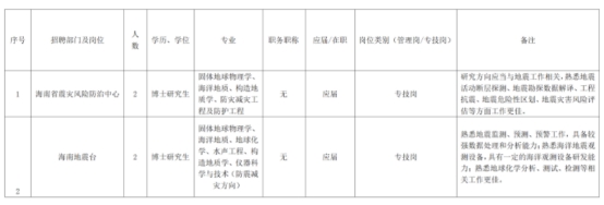 根據(jù)《事業(yè)單位人事管理?xiàng)l例》《事業(yè)單位公開(kāi)招聘人員暫行規(guī)定》和《中國(guó)地震局進(jìn)人管理辦法》等有關(guān)規(guī)定,海南省地震局面向社會(huì)公開(kāi)招聘2025年事業(yè)單位工作人員(第二批)。現(xiàn)將有關(guān)事項(xiàng)公告如下。