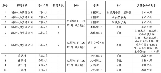 根據(jù)工作需要,按照“公開、公平、公正”的原則,經(jīng)周鐵鎮(zhèn)黨委、政府研究決定,面向社會(huì)公開招聘宜興市湖韻人力資源服務(wù)有限公司工作人員14名,村條線工作人員4名。現(xiàn)將有關(guān)事項(xiàng)公告如下: