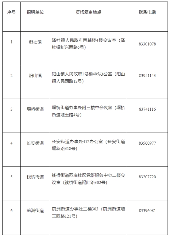 2.資格復(fù)審由各招聘單位黨建工作辦公室(組織)負(fù)責(zé),詳細(xì)地點(diǎn)、聯(lián)系電話如下: