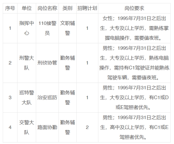 因工作需要,現(xiàn)面向社會公開招聘公安機關(guān)警務(wù)輔助人員,F(xiàn)將有關(guān)事項公告如下: