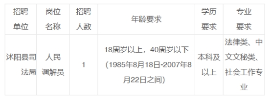 根據(jù)工作需要,沭陽縣司法局面向社會公開招聘人民調(diào)解員(非事業(yè)編制)1名。招錄工作按照“自愿報名、公開競爭、擇優(yōu)錄用”的原則,采取報名、考試、體檢、考察、公示、聘用的程序進行,F(xiàn)將有關(guān)事項公告如下。