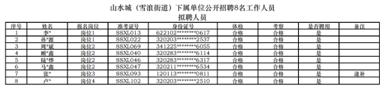 根據(jù)2025年《山水城(雪浪街道)下屬單位公開招聘8名工作人員招聘簡(jiǎn)章》,經(jīng)過報(bào)名、資格初審、體測(cè)、筆試、面試、體檢及考察等工作,現(xiàn)對(duì)擬聘人員進(jìn)行公示。公示期為5個(gè)工作日,自2025年9月15日至2025年9月19日。