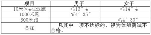 2.參加體能測試的考生,按通知到指定地點參加體能測試;測試項目和標準為: