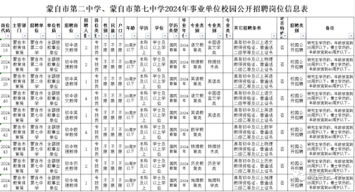 詳見《蒙自市第二中學(xué)2024年校園公開招聘崗位信息表》(附件1)。