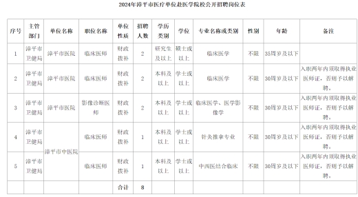 附件:2024年漳平市醫(yī)療單位赴醫(yī)學(xué)院校公開招聘崗位表