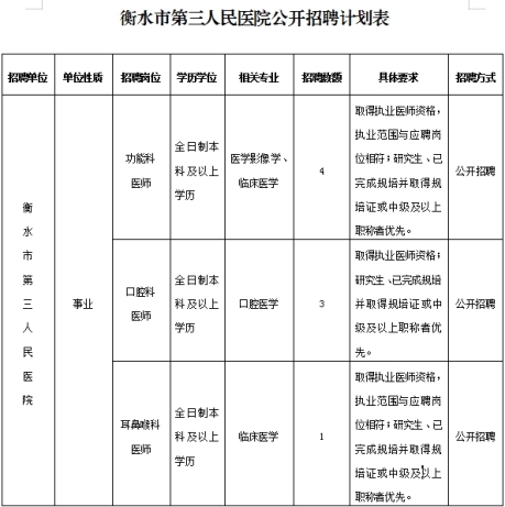 (四)崗位有其他要求的以崗位要求為準(zhǔn)詳見附件《衡水市第三人民醫(yī)院公開招聘計(jì)劃表》(五)下列人員不在招聘范圍內(nèi)